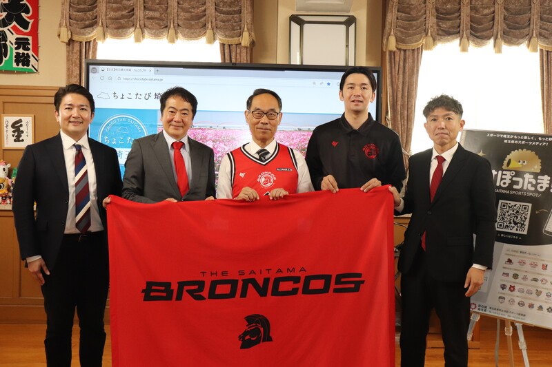 先日、ディップ株式会社は、Bリーグ「さいたまブロンコス」のオーナー企業となりましたこと、並びに今シーズンへの決意をご報告するため、埼玉県知事である大野 元裕知事を表敬訪問いたしました。
